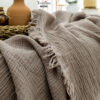 Açık Gri Renk 4 Tarafı Saçaklı Müslin Yatak Örtüsü
