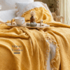 Hardal Renk 4 Tarafı Saçaklı Çift Kişilik Müslin Yatak Örtüsü / Pike