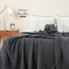 Koyu Gri Renk 4 Tarafı Saçaklı Müslin Yatak Örtüsü