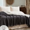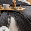 SİYAH Renk 4 Tarafı Saçaklı Çift Kişilik Müslin Yatak Örtüsü / Pike